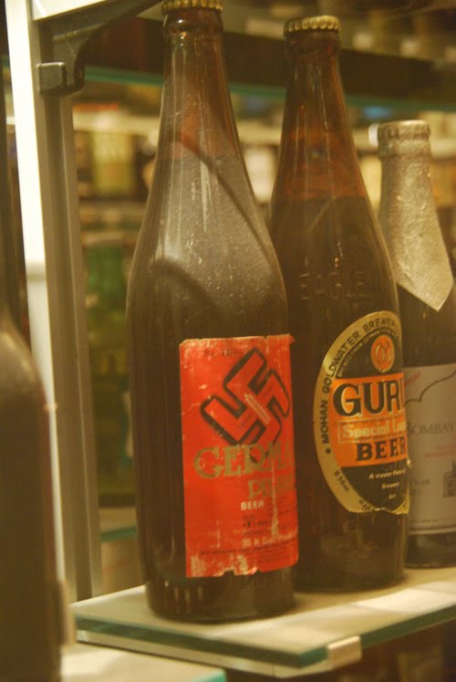 No es lo que parece. En realidad la esvástica simbolizaba eficacia. Cuando los nazis se la apropiaron en Carlsberg dejaron de etiquetar así sus botellas. En el precio de la entrada vienen incluídas dos cervezas. Pero ya puestos te pides otras tres y así haces la degustación completa.